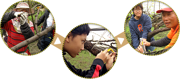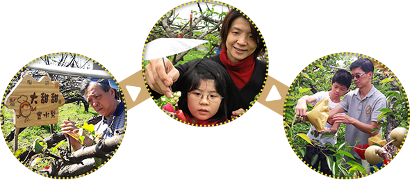 梨樹認養期間可以全家一起來體驗上將梨由嫁接、授粉、撐傘、疏果、套袋到採收的過程!並不定期拍照片發送LINE告知認養人目前果樹生長的狀態!